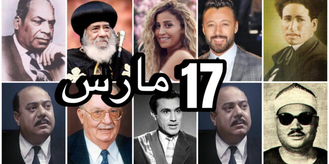 للأيام حكايات، ولكل حكاية تفاصيل وأحداث وشخصيات، وفي هذه السطور نحكي حكايات الأيام.. واليوم هو 17 مارس. 17 مارس أو 17 آذار أو يوم 17 \ 3 (اليوم السابع عشر من الشهر الثالث) هو اليوم السادس والسبعون (76) من السنة البسيطة، أو اليوم السابع والسبعون (77) من السنوات الكبيسة وفقًا …