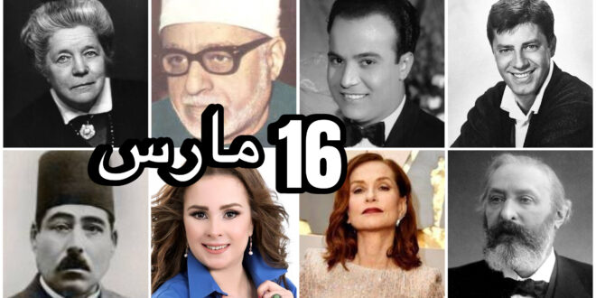 للأيام حكايات، ولكل حكاية تفاصيل وأحداث وشخصيات، وفي هذه السطور نحكي حكايات الأيام.. واليوم هو 16 مارس. 16 مارس أو 16 آذار أو يوم 16 \ 3 (اليوم السادس عشر من الشهر الثالث) هو اليوم الخامس والسبعون (75) من السنة البسيطة، أو اليوم السادس والسبعون (76) من السنوات الكبيسة وفقًا …