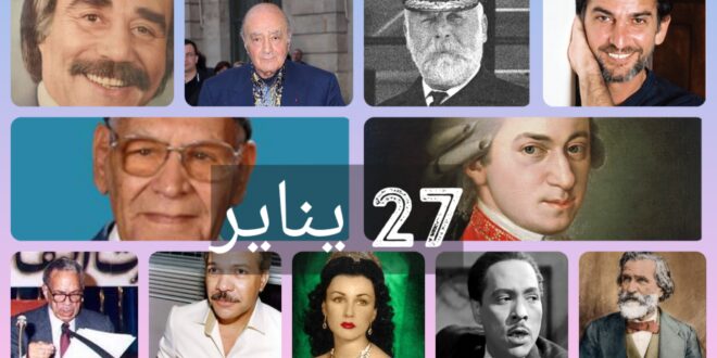 للأيام حكايات، ولكل حكاية تفاصيل وأحداث وشخصيات، وفي هذه السطور نحكي حكايات الأيام.. واليوم هو 27 يناير. 27 يناير (كانون الثاني) أو يوم 27 \ 1 (اليوم السابع والعشرون من الشهر الأوَّل) هو اليوم السابع والعشرون (27) من السنة وفقًا للتقويم الميلادي الغربي (الجريجوري). يبقى بعده 338 يومًا لانتهاء السنة، …