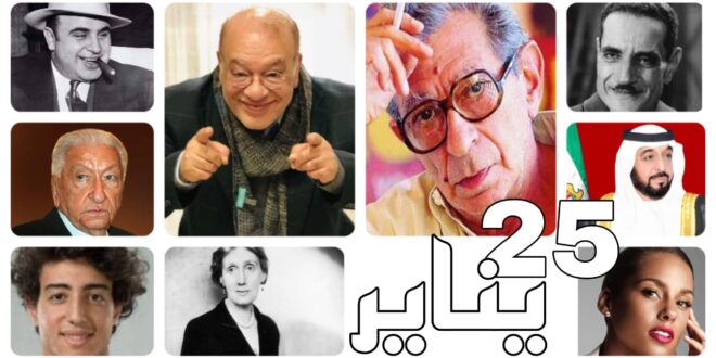 للأيام حكايات، ولكل حكاية تفاصيل وأحداث وشخصيات، وفي هذه السطور نحكي حكايات الأيام.. واليوم هو 25 يناير. 25 يناير أو 25 كانون الثاني أو يوم 25\1 (اليوم الخامس والعشرون من الشهر الأوَّل) هو اليوم الخامس والعشرون (25) من السنة وفقًا للتقويم الميلادي الغربي (الغريغوري). يبقى بعده 340 يومًا لانتهاء السنة، …