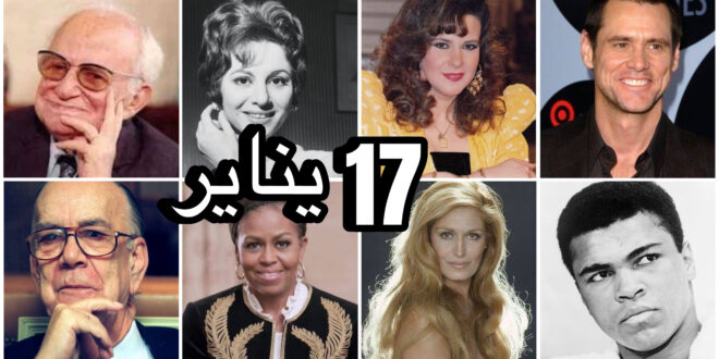 للأيام حكايات، ولكل حكاية تفاصيل وأحداث وشخصيات، وفي هذه السطور نحكي حكايات الأيام.. واليوم هو 17 يناير. 17 يناير أو 17 كانون الثاني أو يوم 17\1 (اليوم السابع عشر من الشهر الأوَّل) هو اليوم السابع عشر (17) من السنة وفقًا للتقويم الميلادي الغربي (الغريغوري). يبقى بعده 348 يومًا لانتهاء السنة، …