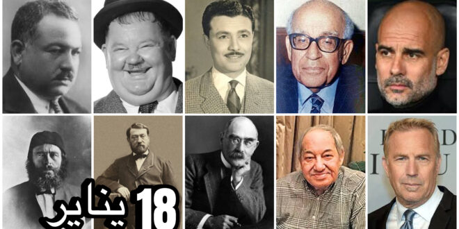للأيام حكايات، ولكل حكاية تفاصيل وأحداث وشخصيات، وفي هذه السطور نحكي حكايات الأيام.. واليوم هو 18 يناير. 18 يناير أو 18 كانون الثاني أو يوم 18 \ 1 (اليوم الثامن عشر من الشهر الأوَّل) هو اليوم الثامن عشر (18) من السنة وفقًا للتقويم الميلادي الغربي (الجريجوري). يبقى بعده 347 يومًا …