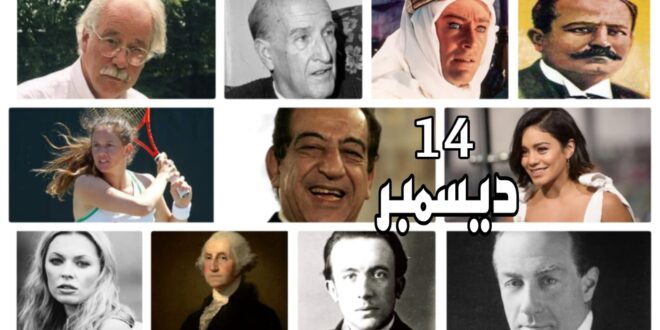 للأيام حكايات، ولكل حكاية تفاصيل وأحداث وشخصيات، وفي هذه السطور نحكي حكايات الأيام.. واليوم هو 14 ديسمبر. 14 ديسمبر (كانون الأول) أو يوم 14 \ 12 (اليوم الرابع عشر من الشهر الثاني عشر) هو اليوم الثامن والأربعين بعد الثلاثمائة (348) من السنة، أو التاسع والأربعين بعد الثلاثمائة (349) في السنوات …