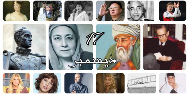للأيام حكايات، ولكل حكاية تفاصيل وأحداث وشخصيات، وفي هذه السطور نحكي حكايات الأيام.. واليوم هو 17 ديسمبر. 17 ديسمبر (كانون الأوَّل) أو يوم 17 / 12 (اليوم السابع عشر من الشهر الثاني عشر) هو اليوم الحادي والخمسون بعد الثلاثمائة (351) من السنة، أو الثاني والخمسون بعد الثلاثمائة (352) في السنوات …
