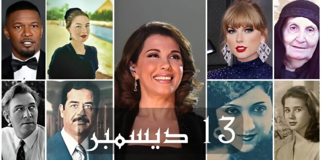 للأيام حكايات، ولكل حكاية تفاصيل وأحداث وشخصيات، وفي هذه السطور نحكي حكايات الأيام.. واليوم هو 13 ديسمبر. 13 ديسمبر (كانون الأوَّل) أو يوم 13 / 12 (اليوم الثالث عشر من الشهر الثاني عشر) هو اليوم السابع والأربعين بعد الثلاثمائة (347) من السنة، أو الثامن والأربعين بعد الثلاثمائة (348) في السنوات …